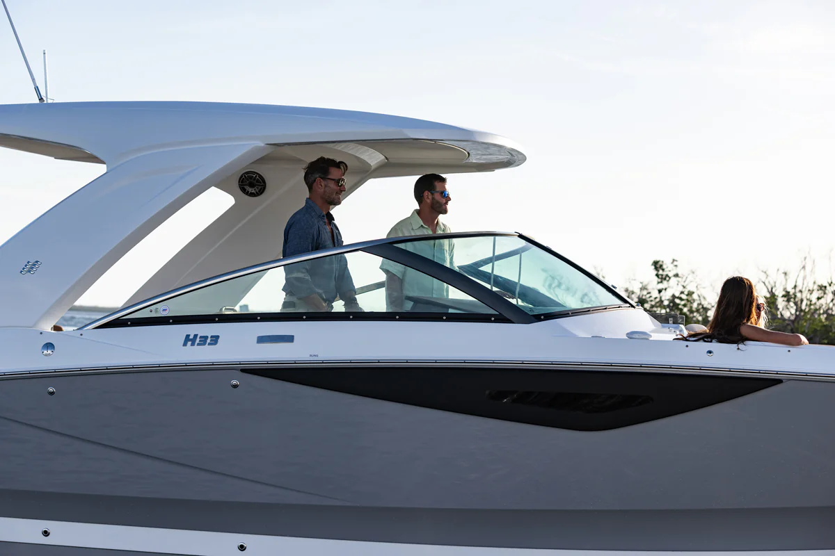 Lassen Sie sich vom H33 begeistern, die Verkörperung der Navigation ohne Grenzen. Mit seinen ikonischen Linien und dem markanten Design verbindet er moderne Eleganz mit fließender Performance. Erleben Sie anspruchsvollen Komfort dank XXL-Cockpit, zwei großzügigen Terrassen und einer voll ausgestatteten Küche, für außergewöhnliche Momente auf See. Der H33 macht jede Ausfahrt zu einer einzigartigen Erfahrung, voller Geselligkeit und Genuss.