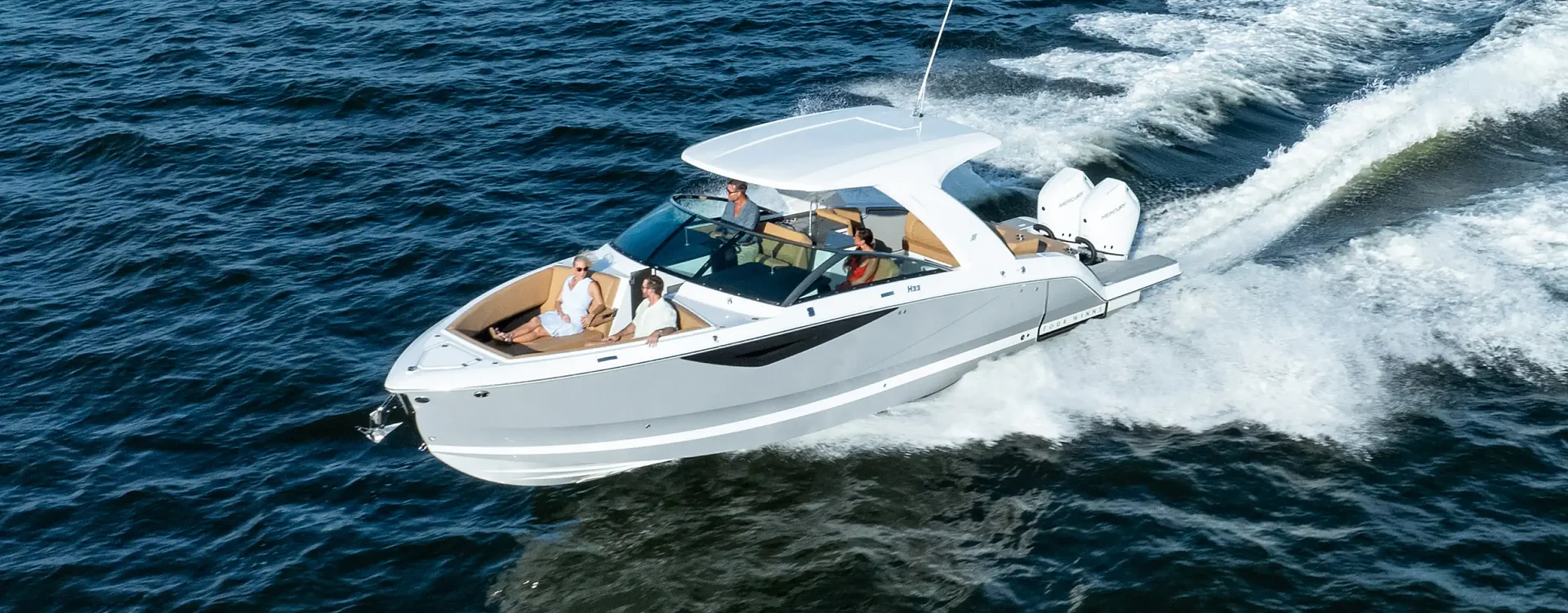 The H-Series platform invites you to enjoy a new meaning of freedom and adventure. Disciplined designs and seamless unity of amenity and style deliver more opportunities to leave stress and work behind. Our outboard models are ready for salty waters expanding your horizon even further.