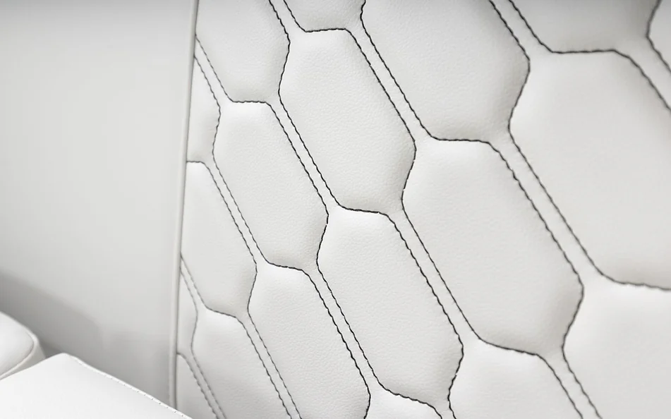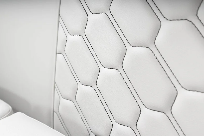Each stitch in the grey vinyl quilted upholstery tells a story of precision and care. The vinyl, protected by Permablok³ Plus+ coating, resists moisture and wear from the sun and is soft to the touch. The bi-color accents and recessed combing pads elevate the look.