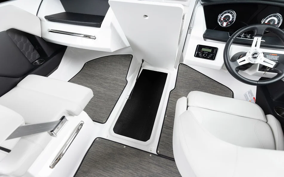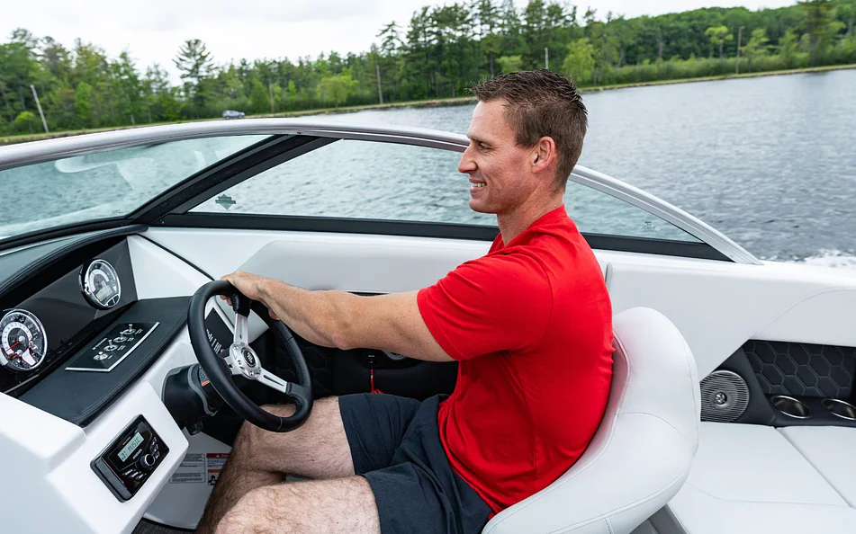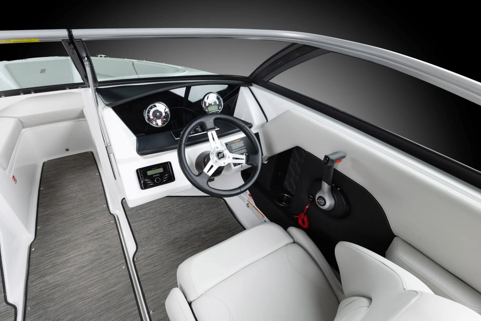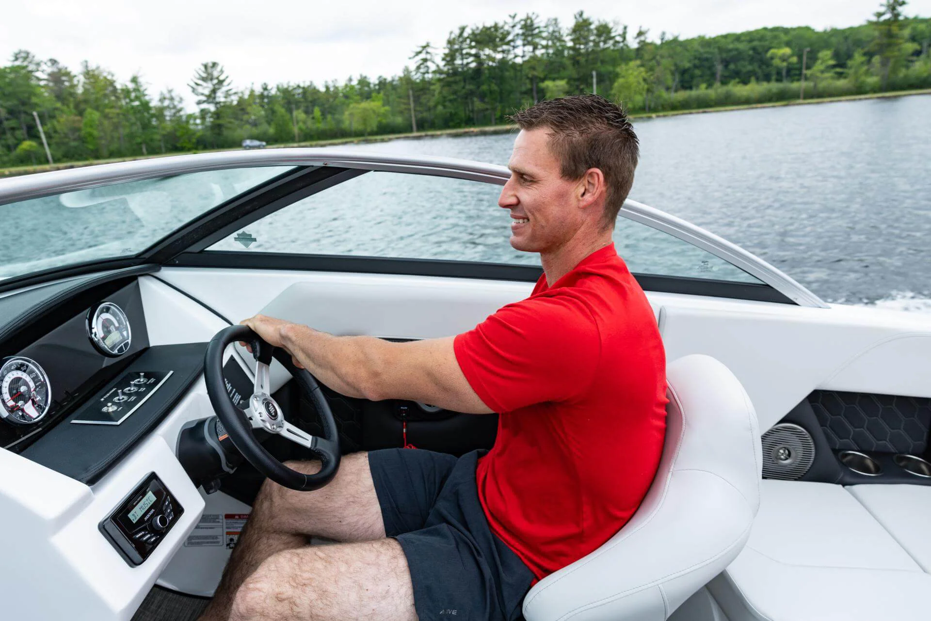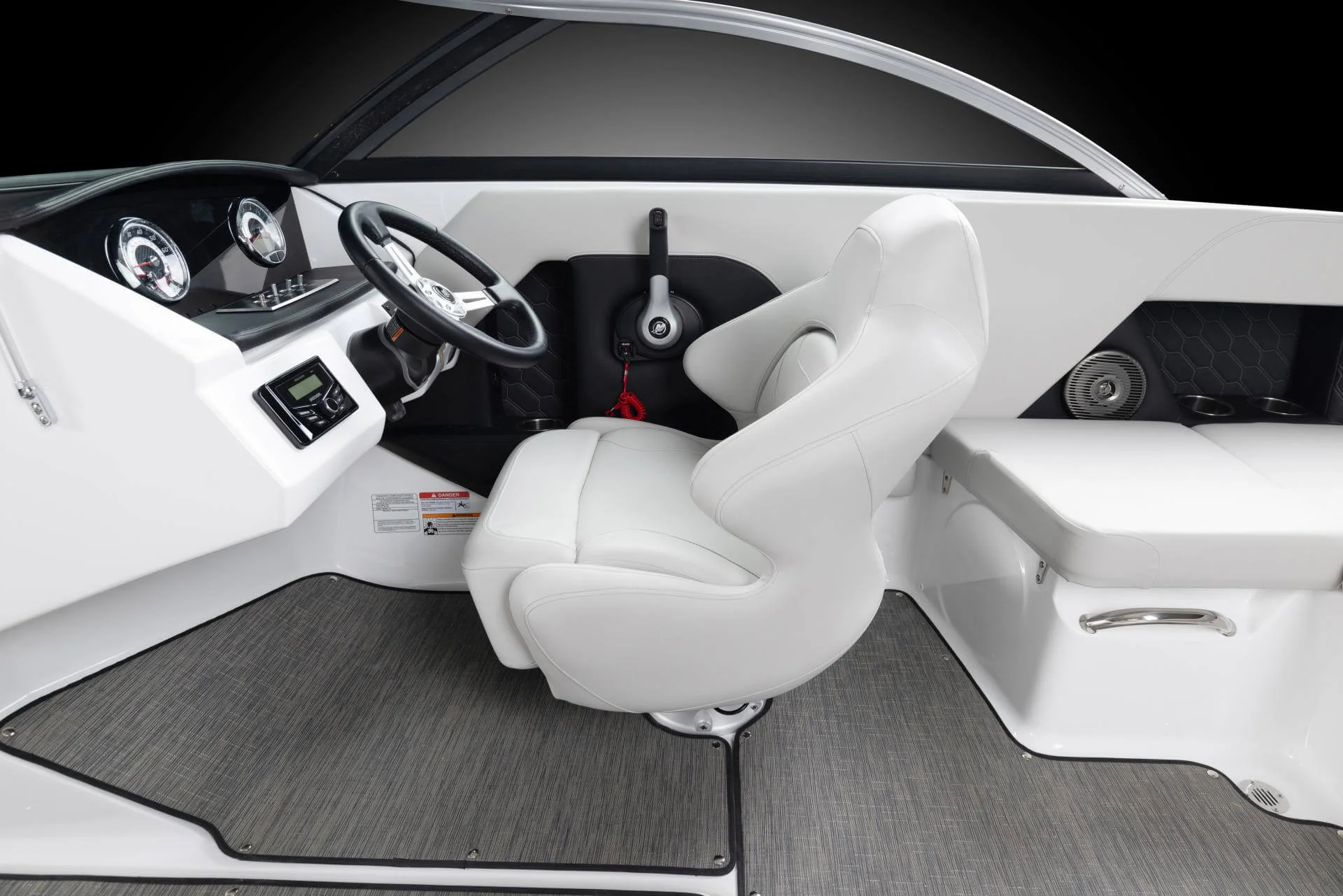 The swivel captain’s chair with bolster provides two driving positions — upright for visibility or nestled low for performance. It’s a helm designed for those who love to drive.