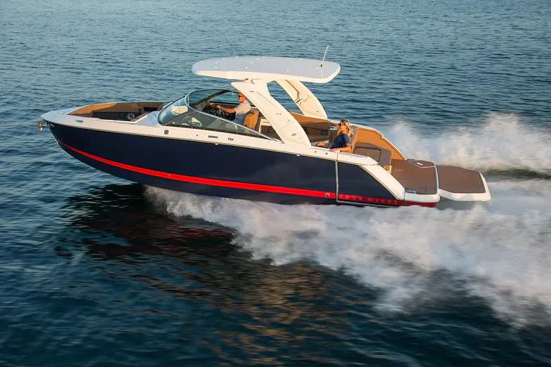 Step into the refined world of the H9 Sterndrive, a thoughtfully designed model featuring Elegant Side Terraces, a fold-down backrest for sunbathing and customizable options. Premium hand-sewn upholstery, sleek finishes, and a streamlined profile embody the Four Winns aesthetic. Enhanced cockpit controls ensure effortless navigation, while multiple storage compartments and a built-in galley offer smart functionality and comfort. The H9 Sterndrive redefines luxury, style and comfort on the water.