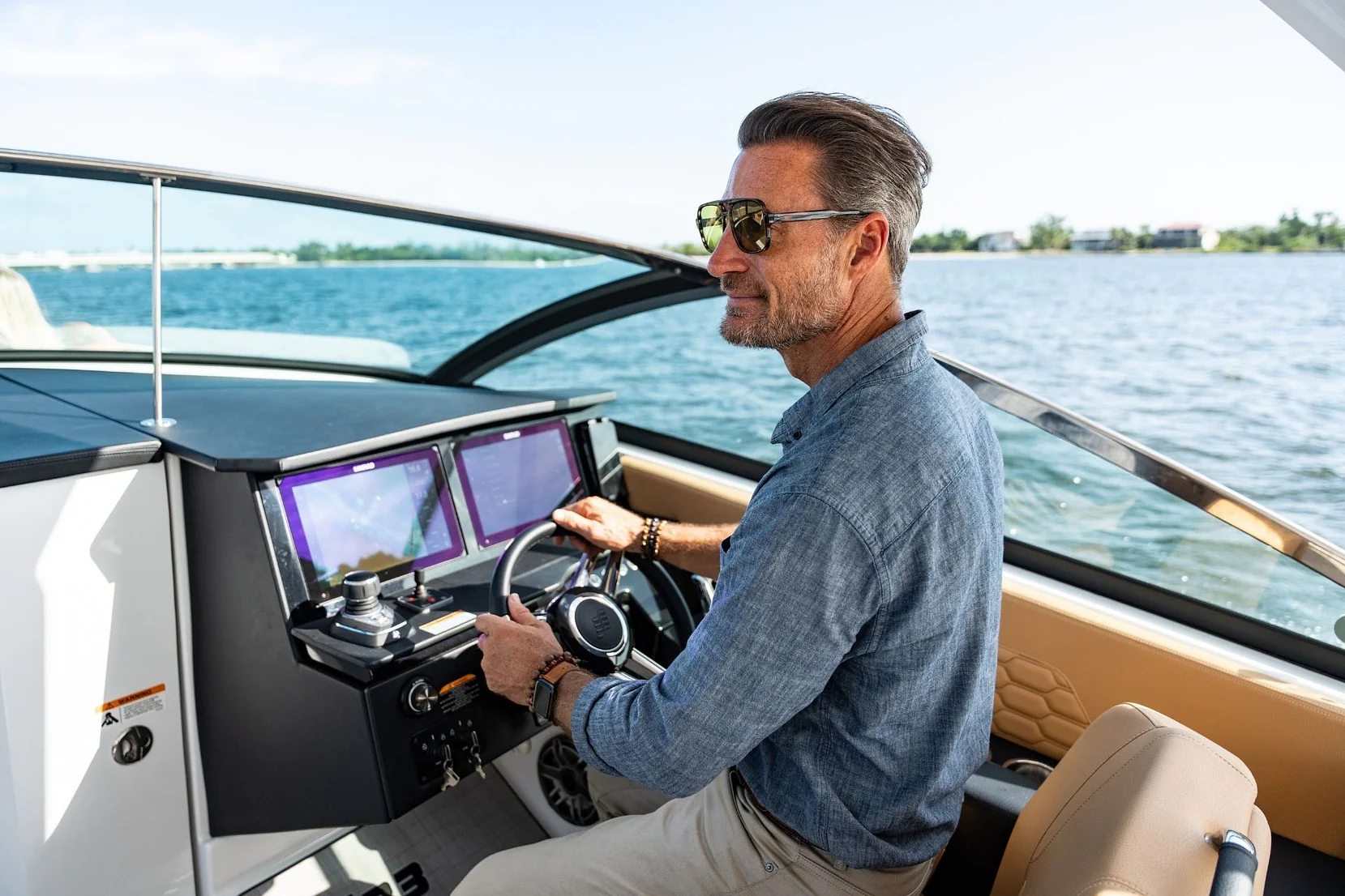 Le poste de pilotage du H33 OB reflète le savoir-faire artisanal de la marque, alliant technologie de pointe et matériaux haut de gamme. Composé d'une banquette spacieuse, de deux écrans de 12 pouces, d'un joystick intuitif et d'un chargeur sans fil, chaque détail ayant été soigneusement pensé pour offrir une expérience de navigation exceptionnelle.